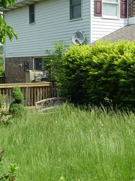 2.) Not cutting often enough. This happens when people go away or try to cut down on mowing by letting the grass get very long, then whacking it way back.